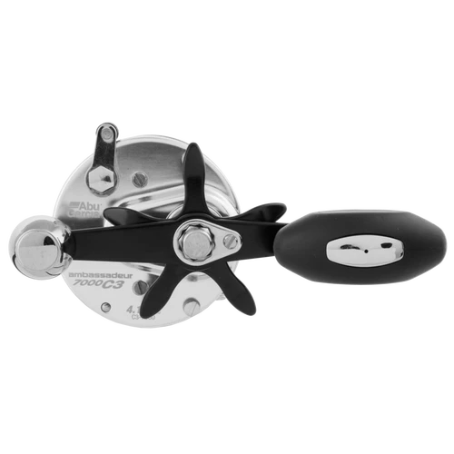 Big water anglers will appreciate the smooth action of the 2 stainless steel ball bearings + 1 roller bearing in the Ambassadeur® 7000 C3 round reel. This model also offers a corrosion-resistant instant anti-reverse bearing for durability and solid hook setting power. The updated extended bend handle with power knob give anglers an edge by increasing torque and aligning the cranking hand closer to the reel for more efficient fighting power. The Ambassadeur® 7000 C3 fishing reel is equipped with a four-pin centrifugal brake for controlled casts and a one-of-a-kind Carbon Matrix™ drag system that delivers smooth and consistent drag pressure across the entire drag range.
