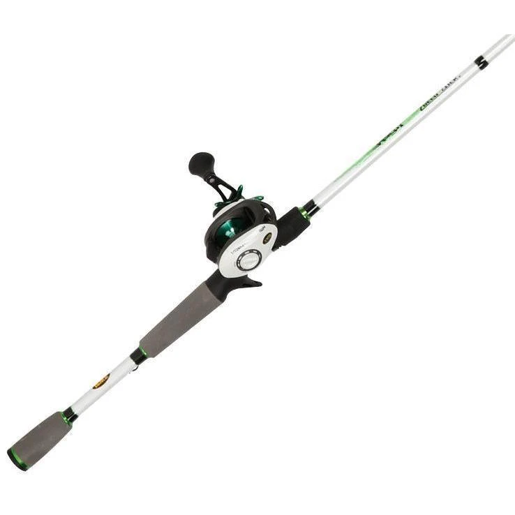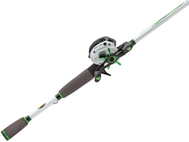 The Mach I baitcast outfit delivers as promised, serving up great value with top quality features. The Mach I reel features a one-piece lightweight graphite frame and sideplates. The preminum 10-bearing system includes Zero-Reverse one-way clutch bearing for smooth retrieves and solid hooksets. The Multi-Setting Brake (MSB) utilizies both an external click dial to adjust the Magnetic Brake System, and an internal 4-pin positive on/off Adjustable Centrifugal Brake System for precise cast control. A double-anodized spool provides plenty of capacity for extra long cast. The rod is built on a one-piece IM8 graphite blank that incorporates Nano technology. Guides are durable stainless steel with smooth aluminum oxide inserts. The Lew’s exclusive graphite skeletal reel seat are lightweight and secure. Durable high density EVA split grips reduce weight without compromising comfort.