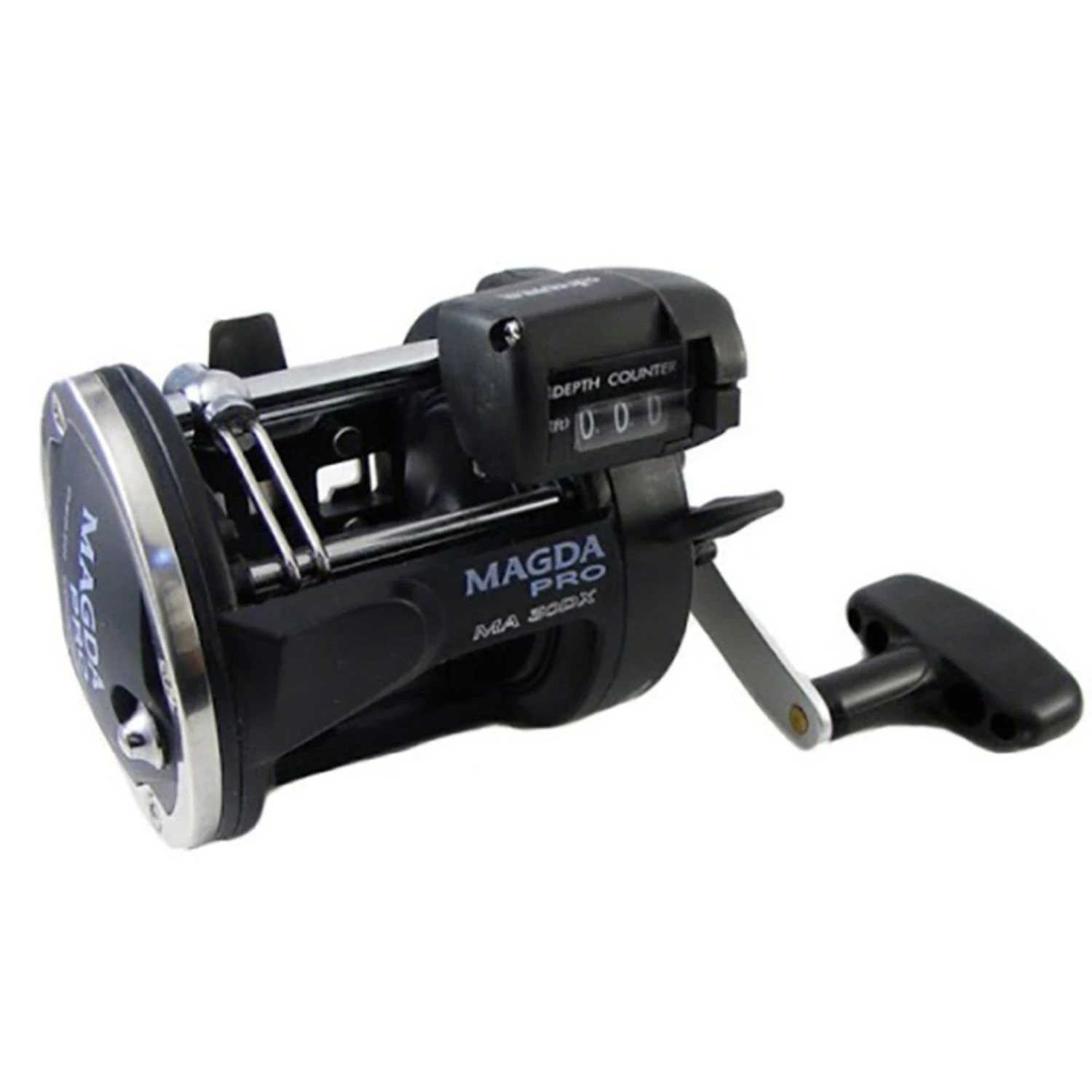 Lightweight corrosion resistant frame and side plates. Corrosion resistant graphite spools. Stainless steel reinforcing side plate rings. Mechanical line counter function measures in feet. Multi-disc Carbonite drag system. 2 Stainless steel ball bearing. Durable Machine cut brass gearing. Self lubricating gear system, all models. Stainless steel levelwind line guide system. DLX represents left hand crank models. Magda Pro reels are backed by a 1-year warranty.