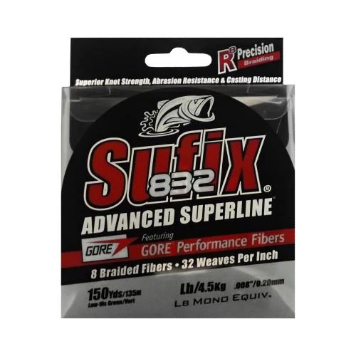 Sufix 832 Advanced Superline is known as the strongest and most durable braid in the fishing world. It utilizes R8 precision braiding and fiber technology to provide superior strength, shape, and line consistency. This Superline is constructed with 8 fibers, including 7 HMPE fibers and 1 GORE performance fiber with 32 weaves per inch. In addition to water-repellent protection, HMPE fibers also improves line strength and sensitivity. The GORE performance fiber enhances abrasion resistance, increases castability, and reduces line vibration.