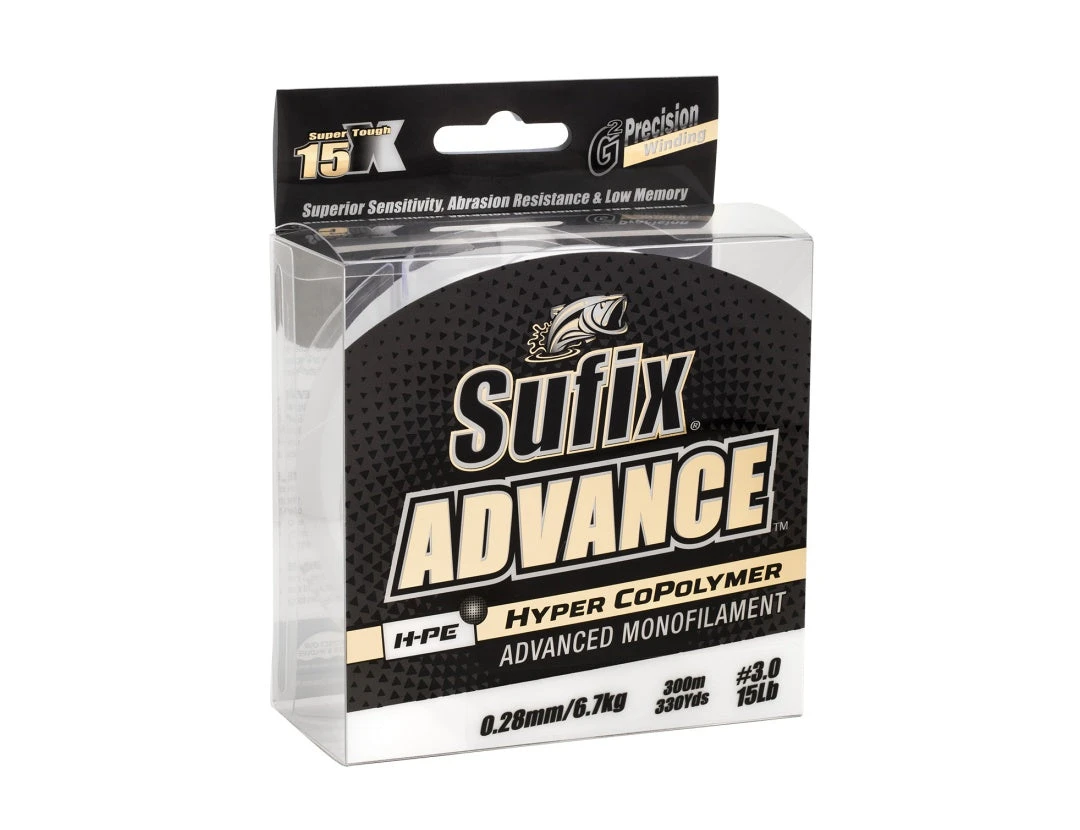 The most abrasion resistant, supple and sensitive monofilament ever. Sufix® Advance™ Monofilament is a combination of HMPE and Hyper Copolymer™ creating superior abrasion resistance, low stretch and sensitivity that has never been seen before.